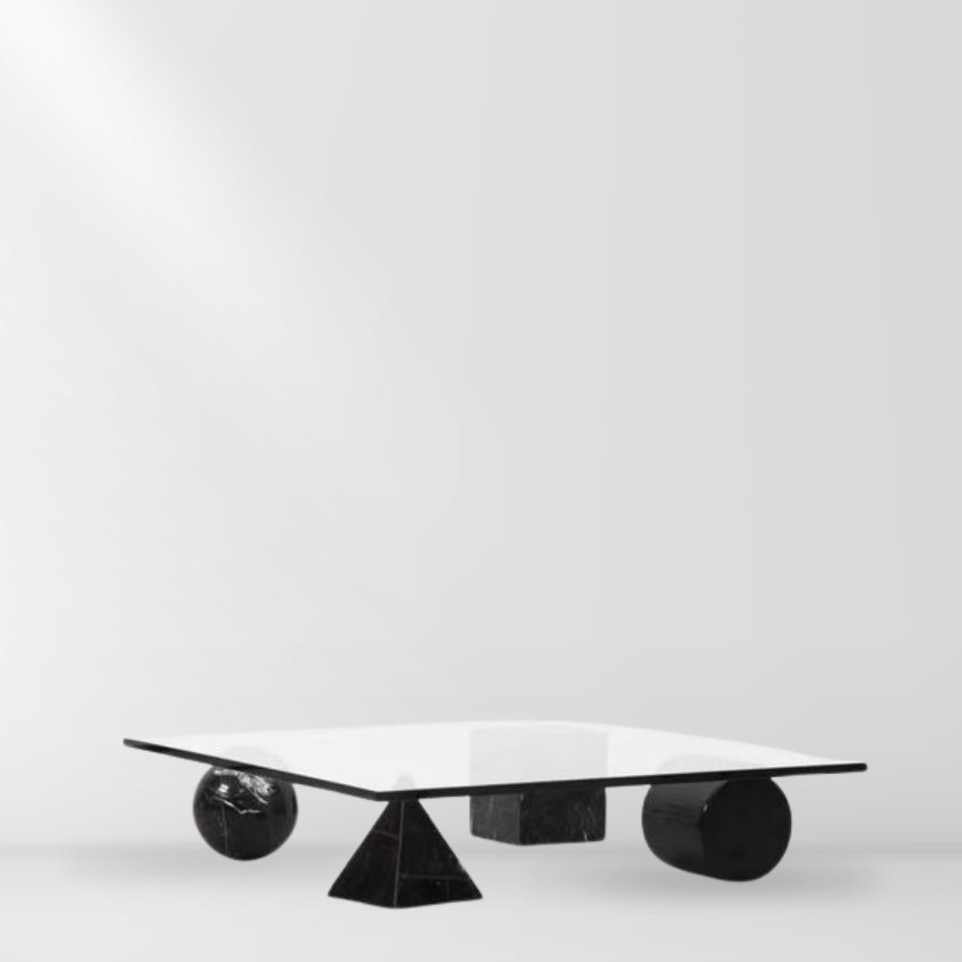 La Mesa Paraiba es una pieza de mobiliario innovadora y moderna se destaca por su diseño geométrico audaz y el uso de materiales de alta calidad. Esta mesa está compuesta por un base de formas geométricas elaboradas en mármol negro Querétaro. La cubierta de vidrio templado aporta un toque de transparencia y ligereza, contrastando armoniosamente con la solidez del mármol.